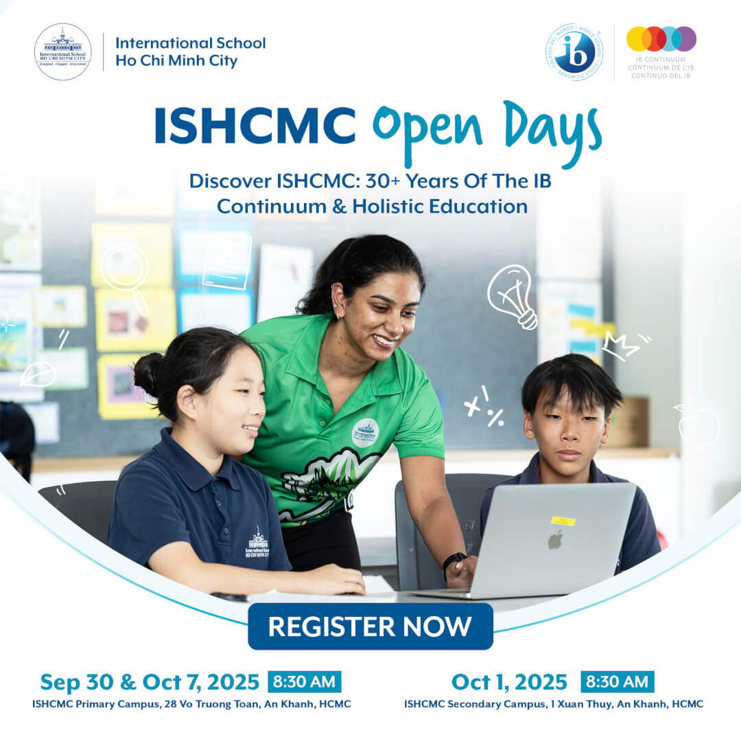 As Ho Chi Minh City's first international school, ISHCMC has over 30 years of experience inspiring students to think critically, embrace challenges, and love learning. Our community includes students from 60+ nationalities thriving in an inclusive, rigorous environment.