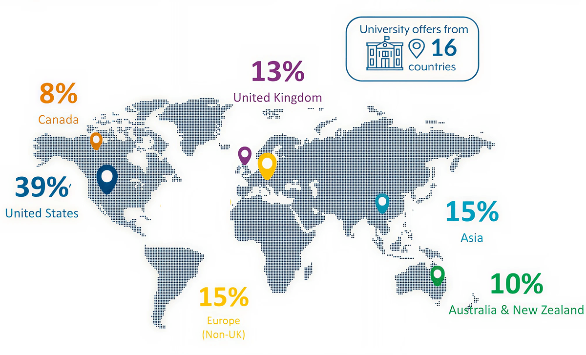 of graduates accepted to top-choice universities worldwide