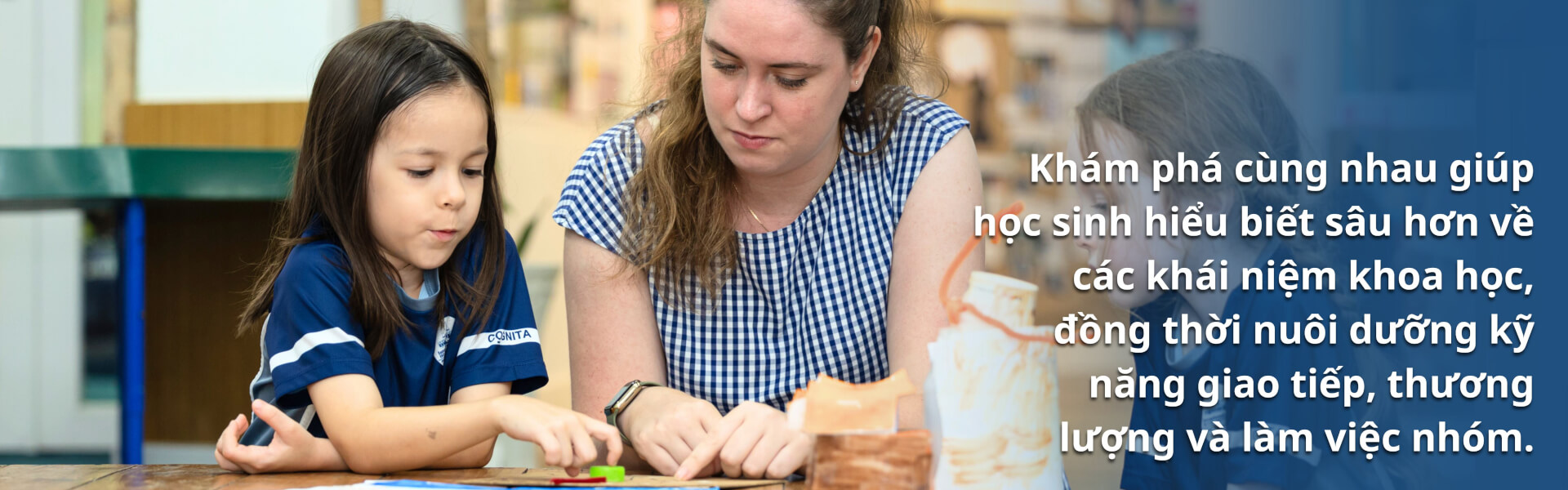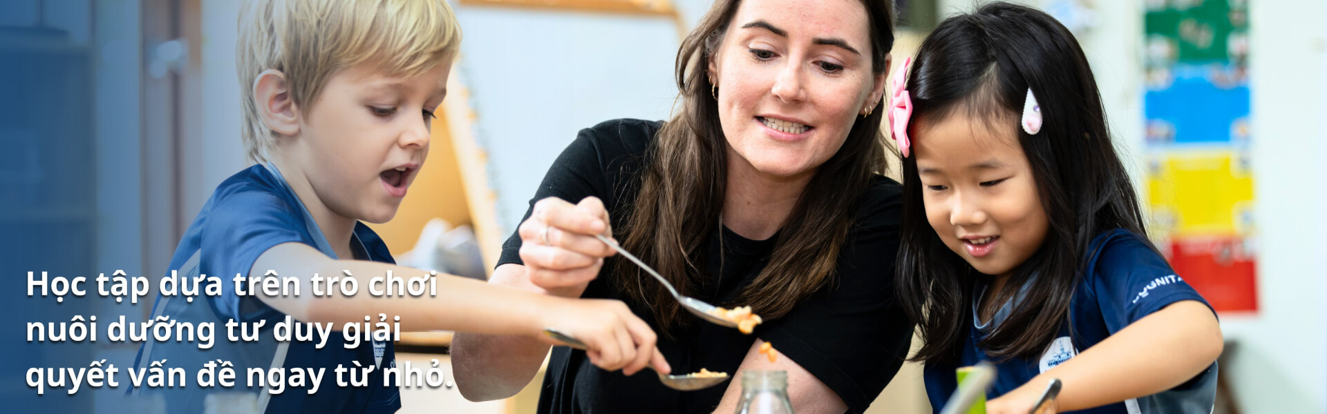 Phương pháp học dựa trên khám phá khơi dậy sự tự nhận thức, kết hợp vui chơi với việc phát triển các kỹ năng thiết yếu như giao tiếp, trí tuệ cảm xúc và giải quyết vấn đề. Đội ngũ giáo viên tâm huyết, đồng hành chặt chẽ cùng gia đình, tạo nên một môi trường nuôi dưỡng, hòa nhập, nơi trẻ em phát triển mạnh mẽ và xây dựng nền tảng vững chắc cho thành công trong tương lai.